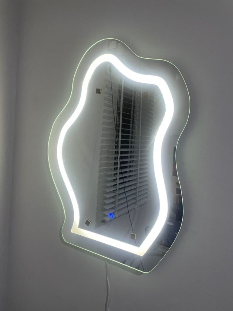 Upgrade your bathroom with this elegant LED smart mirror, designed to blend luxury with functionality. Featuring a soft halo backlight, this mirror provides perfect illumination for grooming, skincare, and makeup—day or night.